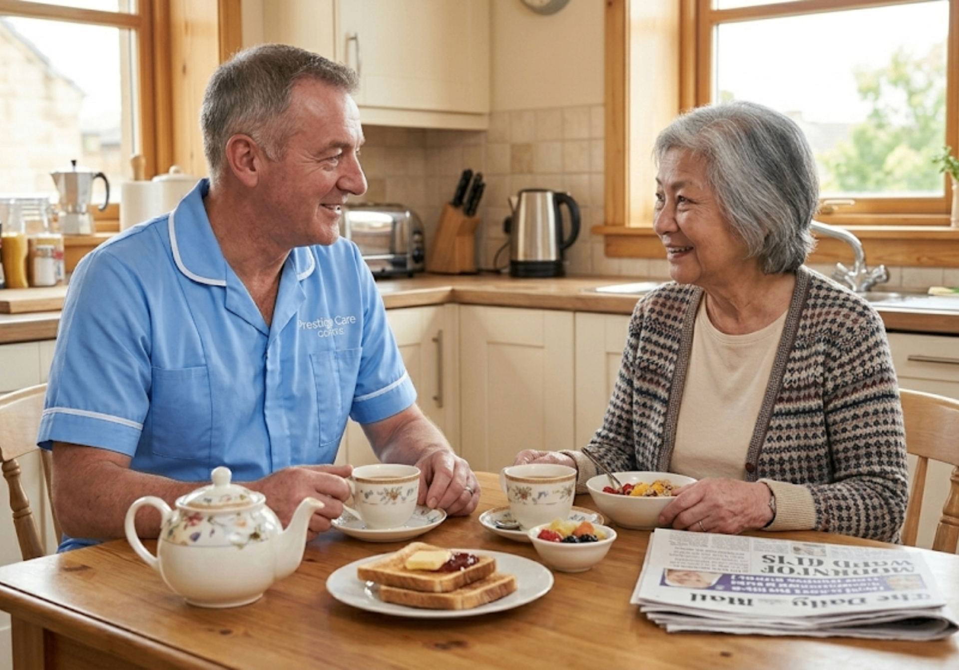 "I was worried about arranging care for my mum, but Prestige Care EK made everything so easy. The assessment was thorough, the pricing was clear, and they really listened to what Mum wanted. Six months on, she's thriving with her twice-daily visits."