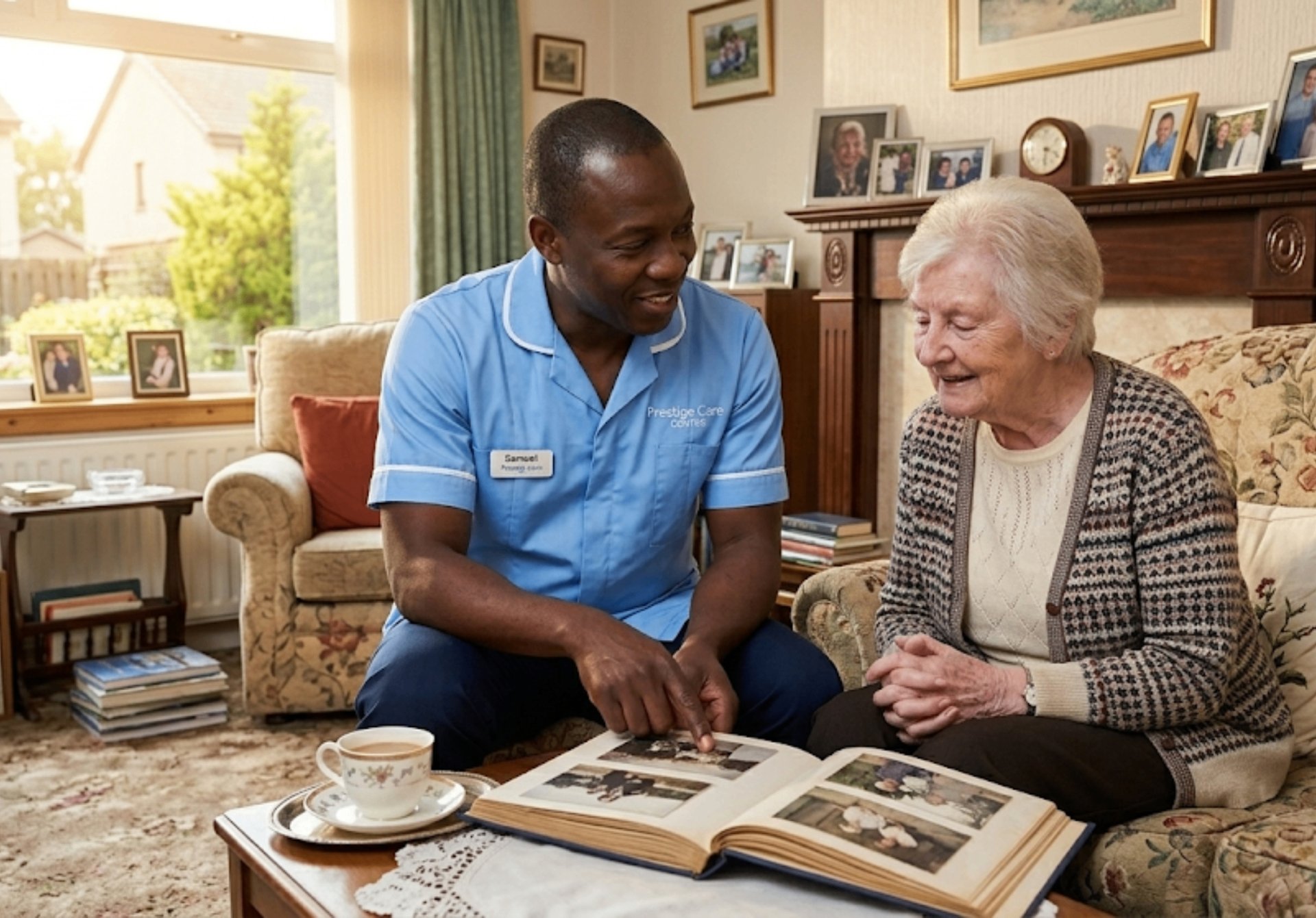 "Mum has Alzheimer's and was becoming unsafe at home alone. The dementia care from Prestige has been transformative. Her carer, Jane, is specially trained and understands Mum's behaviours. She uses reminiscence, maintains Mum's routines, and manages the repetitive questions with such patience. Mum has remained at home, happy and comfortable."
